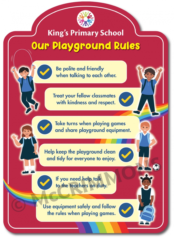 These colourful Playground Signs can be personalised to suit your school, with your school colours/logo/name and playground rules.