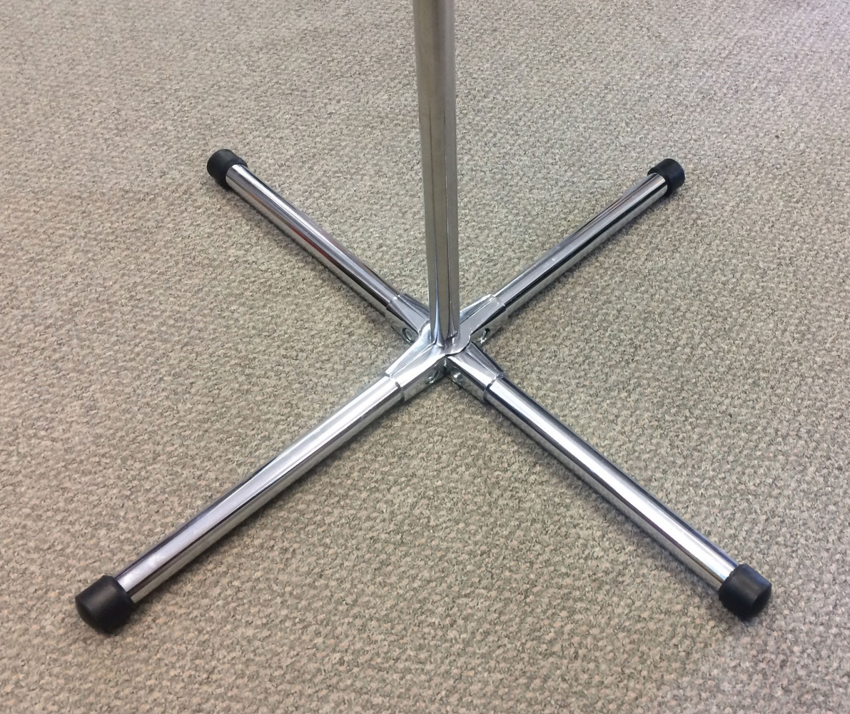 Four legged self-assembly stand for use with either the 4ft or 5ft chrome poles