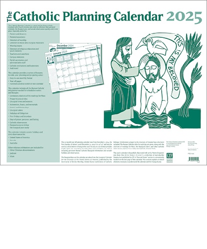 This 13-month tear-off planning calendar offers ample space for recording your plans for the entire year. Great for use as a desk blotter or hanging on the wall, this calendar includes many Catholic and secular observances, liturgical colors, holydays of obligation, feast days, and more. It runs from the First Sunday of Advent until the last day of the civic calendar year. The liturgical days on this calendar are taken from the Liturgical Calendar for the Dioceses of the United States of America, published by the Secretariat of Divine Worship, United States Conference of Catholic Bishops. Celebrations proper to the dioceses of Canada have also been included. The Roman Catholic titles for each day are given, along with the citations of readings for Mass, the liturgical colors, and other Catholic observances, such as First Fridays and Catholic Schools Week.