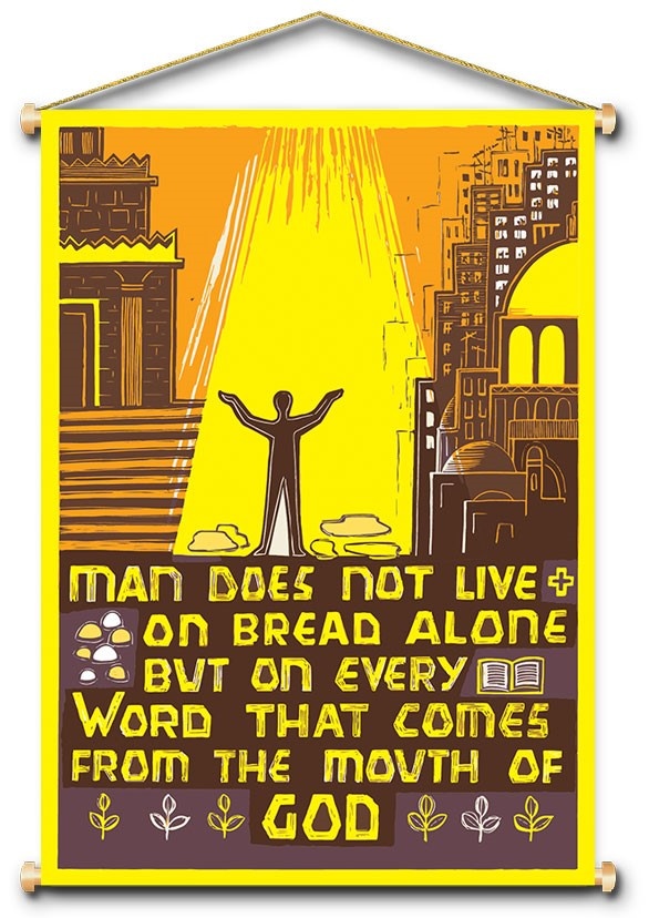 Categories | Church | Banners | Man does live on bread alone - Banner BAN2035