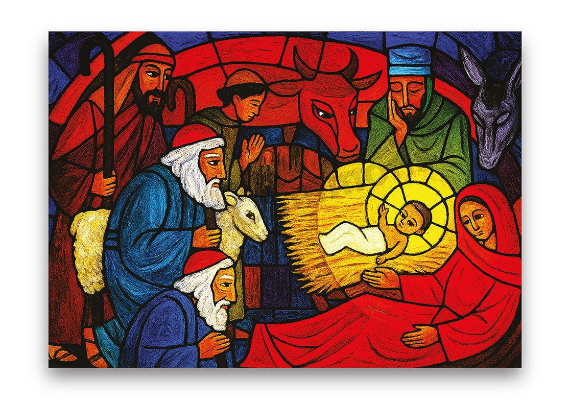The original 'Nativity' artwork by Turvey Abbey has been recreated in stained glass.