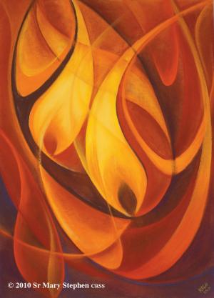 Hearts aflame with the Spirit spread fire and a suggestion of the sacred space within which they burn.