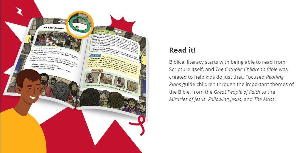 With new, easy-to-follow Reading Plans and colourful stickers, the stories of our Catholic faith come alive with vivid, awe-inspiring artwork, larger text, and design features that not only enhance comprehension but create enjoyment.