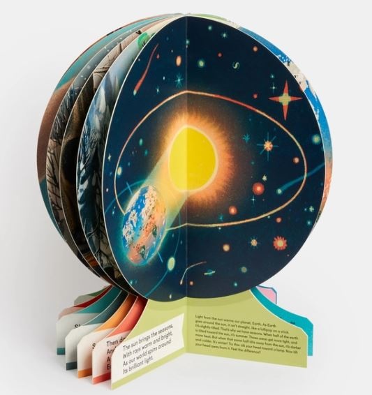 Explore Earth’s four seasons with this charming read-aloud introduction to weather around the world. Beautifully illustrated and cleverly designed, Our Seasons opens and folds back into a sturdy circular globe fastened by a hidden magnetic closure.