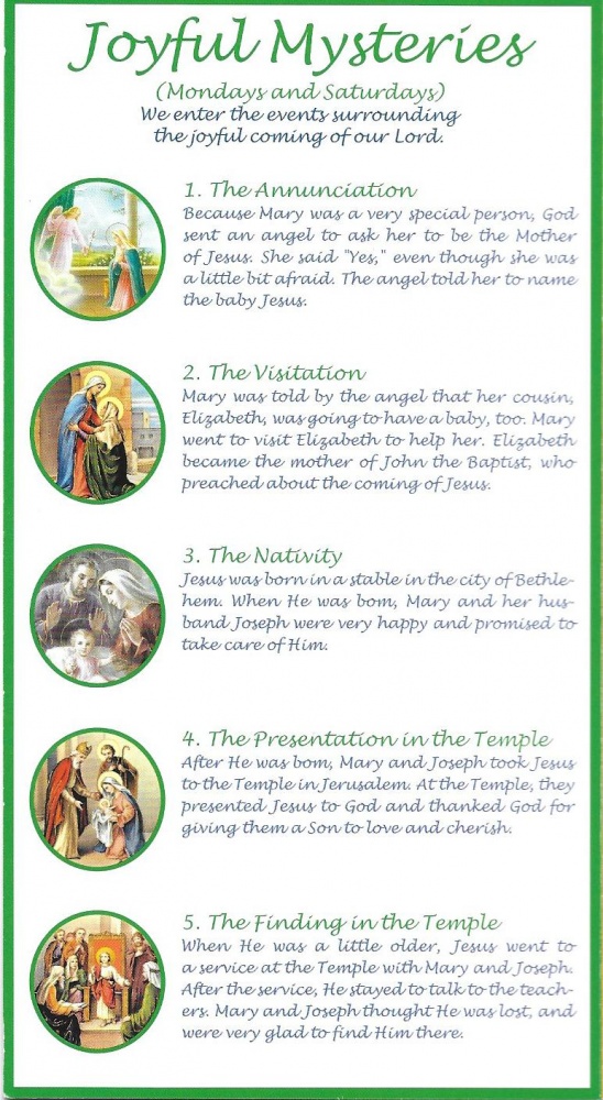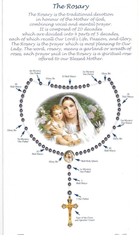Illustrated leaflet to help children understand and pray the rosary. It includes the prayers: Hail Mary, Our Father, Glory Be & Apostles' Creed.