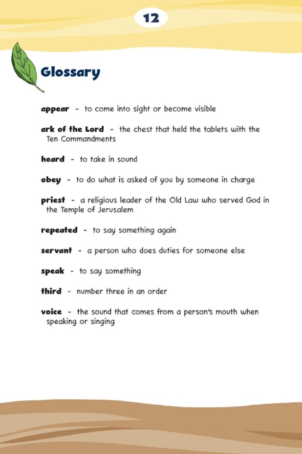 • God Calls Samuel Big Book, measuring 14 in. x 21 in., is designed to be easy to read and hold in front of a group of children