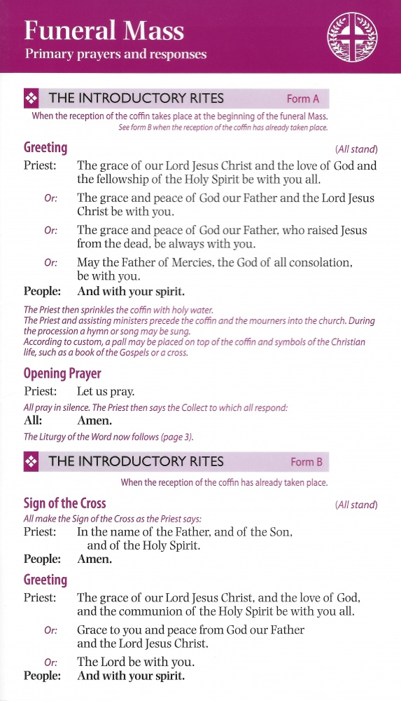 Primary prayers and responses in accordance with the revised Roman Missal translation (2010).