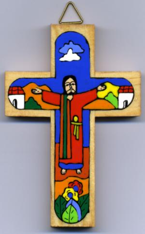A colourful wooden cross from a fairly-trade co-operative in El Salvador.