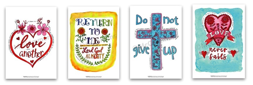 Set of 8 posters with Scriptural messages of Love & Encouragement.