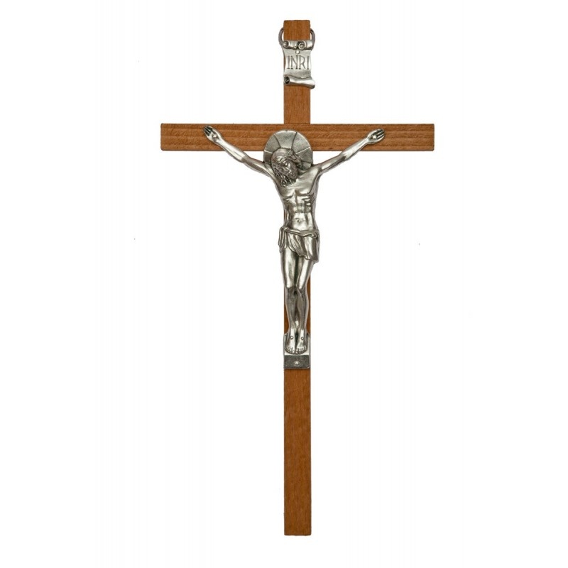 Brown wood Crucifix 30cm with oxidised metal Corpus in a traditional design