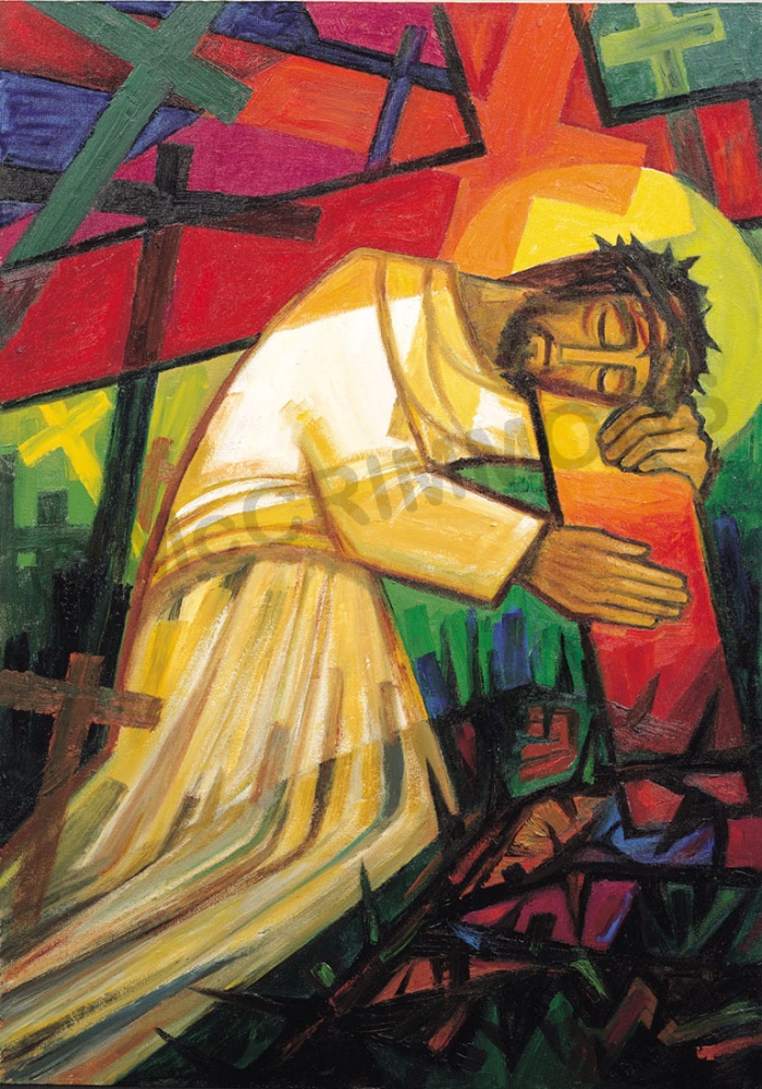 Sixteen Stations of the Cross. These inspired illustrations of Christ's journey to the Cross and beyond are presented to us through colour and symbol.