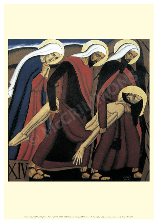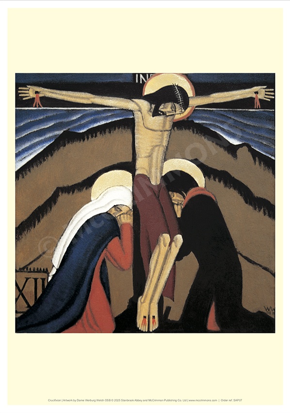 Dame Werburg Welch (1894-1990), a Benedictine nun of Stanbrook Abbey, produced high quality wood engravings, low relief wood carving, paintings and vestments throughout her monastic life. She also undertook numerous commissions for Stations of the Cross and hanging crucifixes for churches. Working exclusively on scriptural themes, her originality of design conveys her deep spirituality rooted in liturgical and personal prayer.