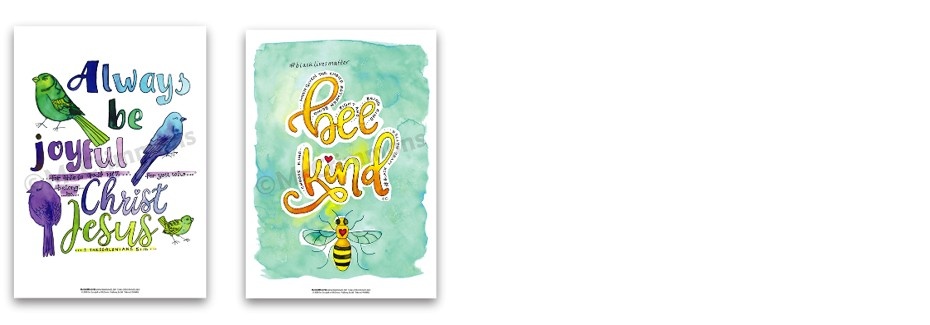 A set of 10 posters taken from Clare Campbell’s extensive collection of artwork (Be the ChangeBlack Lives MatterInspirational Word ArtLove Scripture and What is Beauty?)