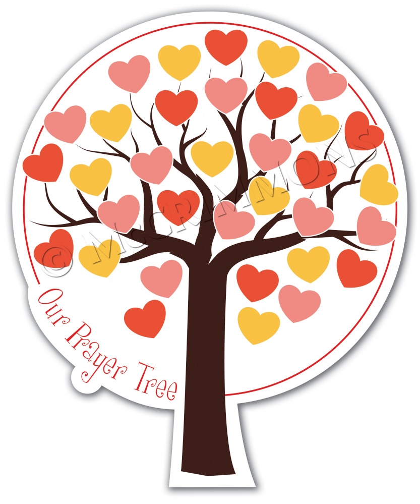 Cut out the hearts, write on your prayer and attach them to your tree. Includes a pack of 'Blu Tack' to attach the hearts.