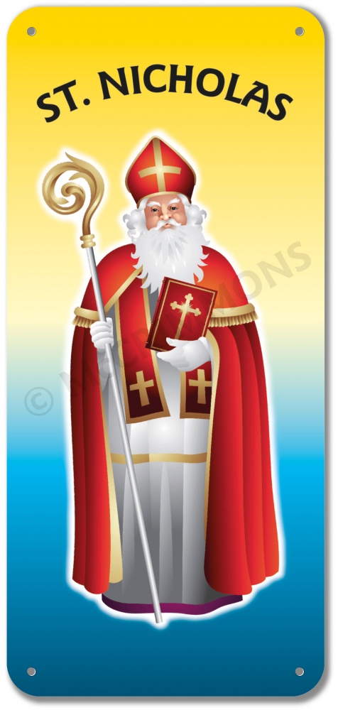 banner. He is known as the patron saint of sailors and children.