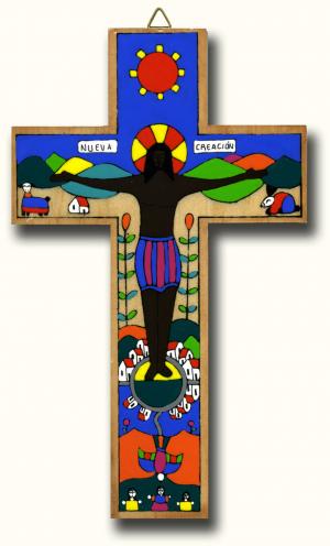 Colourful hand-made wooden cross from a fairly-trade co-operative in El Salvador.