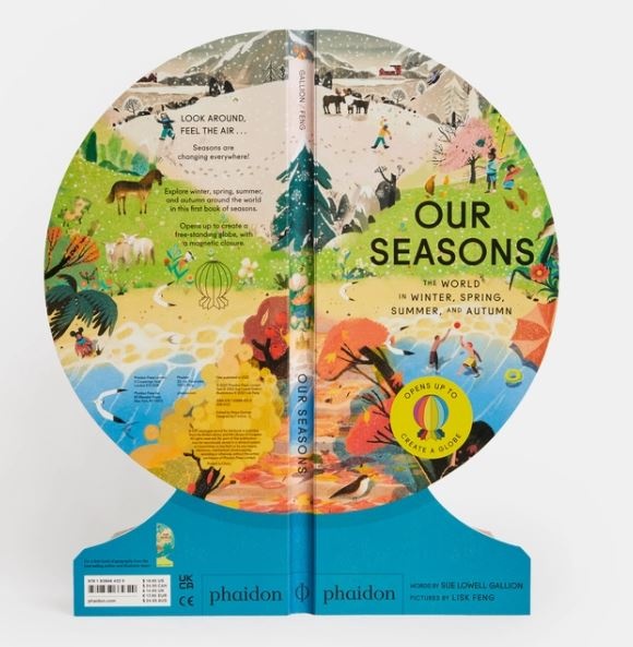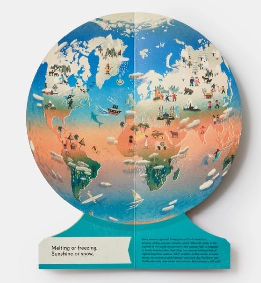 Explore Earth’s four seasons with this charming read-aloud introduction to weather around the world. Beautifully illustrated and cleverly designed, Our Seasons opens and folds back into a sturdy circular globe fastened by a hidden magnetic closure.