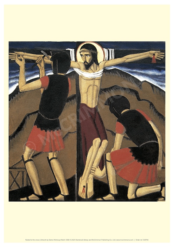 Dame Werburg Welch (1894-1990), a Benedictine nun of Stanbrook Abbey, produced high quality wood engravings, low relief wood carving, paintings and vestments throughout her monastic life. She also undertook numerous commissions for Stations of the Cross and hanging crucifixes for churches. Working exclusively on scriptural themes, her originality of design conveys her deep spirituality rooted in liturgical and personal prayer.