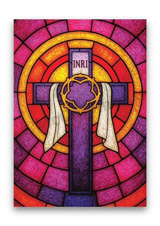 The original 'Lent' artwork by Turvey Abbey has been recreated in a stained glass design.