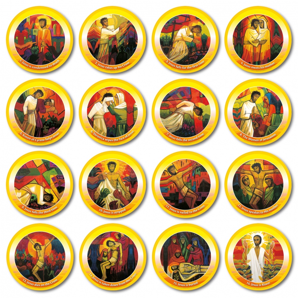 Categories | Themed Categories | Other | Stations of the Cross | Footsteps of Christ - Circular Display Board Set of 16