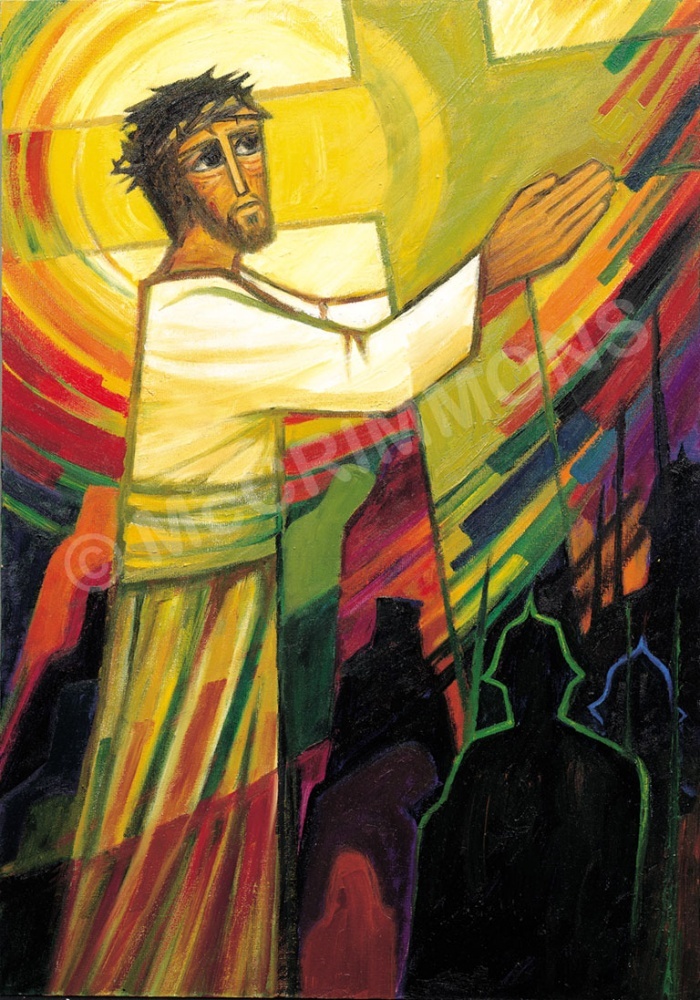 Sixteen Stations of the Cross. These inspired illustrations of Christ's journey to the Cross and beyond are presented to us through colour and symbol.